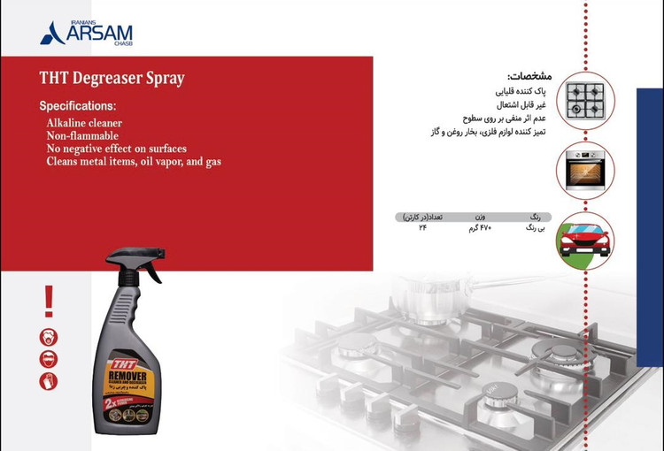 اسپری نانو چربی زدا اسپری چربی زدا نانو تی اچ تی با قدرت چربی بری فوق العاده و فاقد ترکیبات مضر انواع کثیفی ها و آلودگی ها به خصوص چربی های سرسخت را حتی بدون دخالت دست از بین ببرد. اسپری چربی زدا نانو دارای فرمولاسیون نانو که بهترین عملکرد را در حذف چربی ها و لکه های سیاه و کهنه دارد.