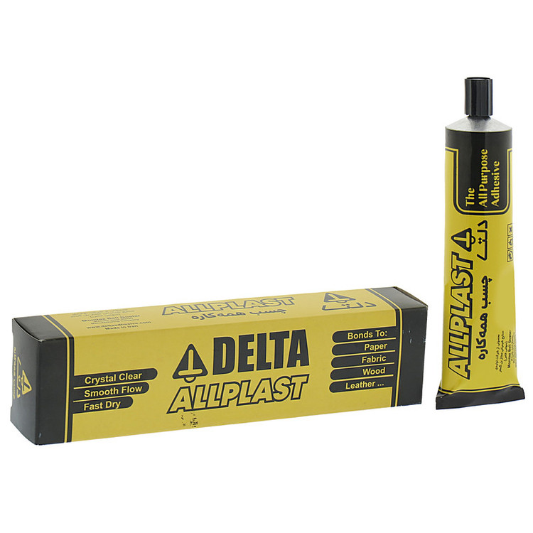 در میان انواع مختلف چسب، چسب تیوبی همه كاره دلتا جزو کارآمد ترین و پرمصرف ترین هاست، مایعی شفاف، یكنواخت و بی رنگ می باشد که در مصارف عمومی، خانگی و حرفه ای جهت چسباندن انواع مواد از جنس کاغذ و مقوا، چرم و پارچه و نمد، لاستیك و پلاستیك، چوب و چوب پنبه و شیشه به کمک شما می آید، به سرعت خشک شده و چسبندگی بسیار بالایی دارد. جهت چسبندگی بهتر ابتدا هر دو سطح مورد نظر را از هر گونه چربی و گرد و غبار پاك كنید ، به صورت یكنواخت به چسب آغشته نموده ، پس از چند ثانیه بعد از خشک شدن نسبی چسب ، دو سطح مورد نظر را روی یكدیگر گذاشته و به مدت چند ثانیه فشار دهید . از تماس مستقیم چسب با پوست و استنشاق بخارات آن خودداری نمایید. در صورت تماس با پوست فورا با آب شسته شود همچنین چسب خشك نشده (سفت نشده) را می توان با استفاده از حلال استون پاك كرد. ترجیحا جهت مصرف امن و راحت و با بازدهی بیشتر در دمای محیط ( بالای 15 درجه ) و به دور از شعله و جرقه نگهداری و استفاده شود (از كشیدن سیگار و ایجاد الكتریسته ساكن خوداری نمایید). چسب را در محلی كه به طور كامل تهویه می شود استفاده نموده و سپس در ظرف چسب را كاملا ببندید. چسب را در محلی دور از دسترس كودكان نگهداری نمایید .